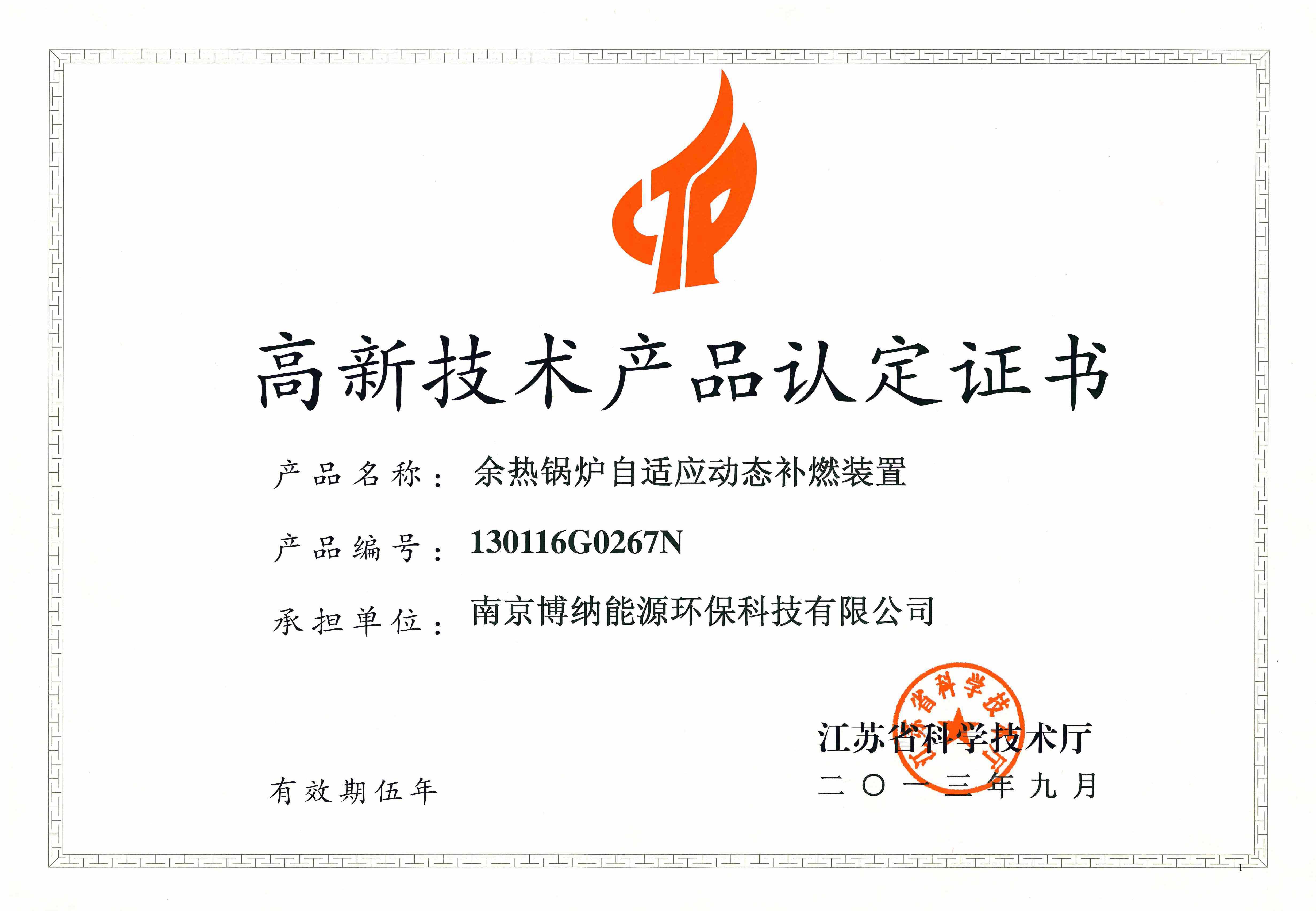 博納科技余熱補燃裝置通過2013年江蘇省高新技術產品認定